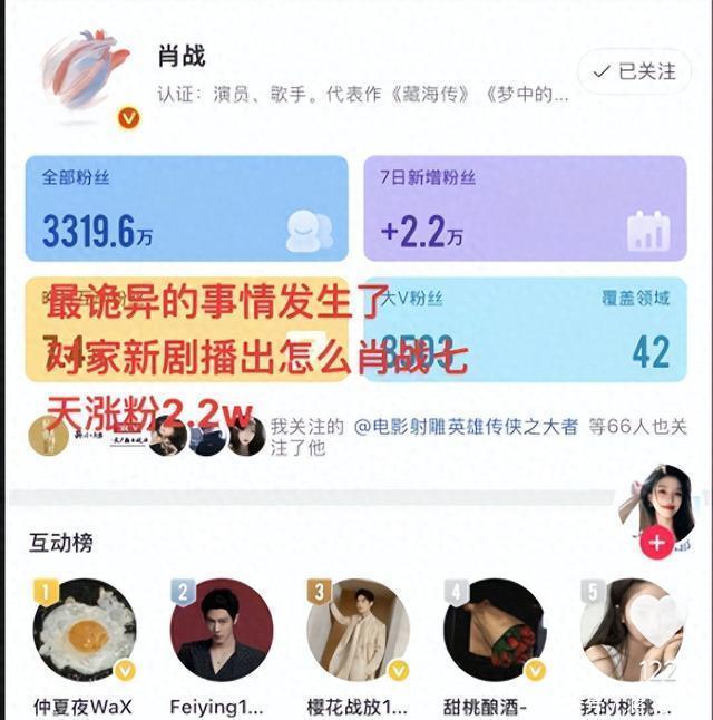 肖战也算“因祸得福”了,感谢成毅粉丝不断对比赴山海和藏海传,结果肖战一个周时间,又涨了三万多粉丝